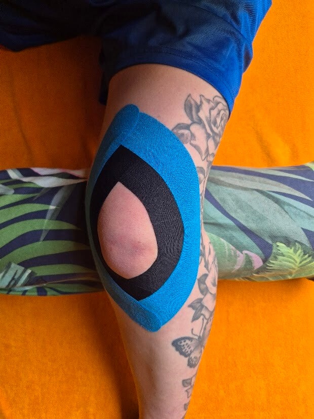 Kinesiotape is een elastische tape die de natuurlijke beweging van het lichaam toelaat.